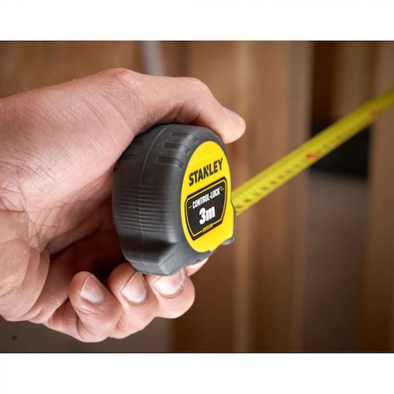 Η μεζούρα STANLEY® CONTROL-LOCK™ 3 μέτρων (πλάτος 19 mm), ελαφριά και συμπαγής, με περίβλημα από καουτσούκ με επένδυση,